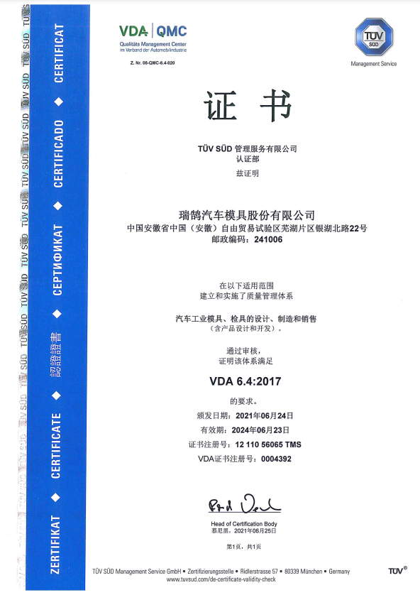????????瑞鵠汽車模具股份有限公司成立于2002年3月,坐落于中國(guó)(安徽)自由貿(mào)易試驗(yàn)區(qū)蕪湖片區(qū)銀湖北路 22 號(hào),股本數(shù)18360萬(wàn),公司的主營(yíng)業(yè)務(wù)為汽車沖壓模具、檢具及焊裝自動(dòng)化生產(chǎn)線的開(kāi)發(fā)、設(shè)計(jì)、制造和銷售,主要產(chǎn)品有沖壓模具(覆蓋件模具、高強(qiáng)板模具)及檢具、焊裝自動(dòng)化生產(chǎn)線、一體化鋁壓鑄零部件,為國(guó)內(nèi)少數(shù)能夠同時(shí)為客戶提供完整的汽車白車身高端制造裝備、智能制造技術(shù)及整體解決方案的企業(yè)之一。